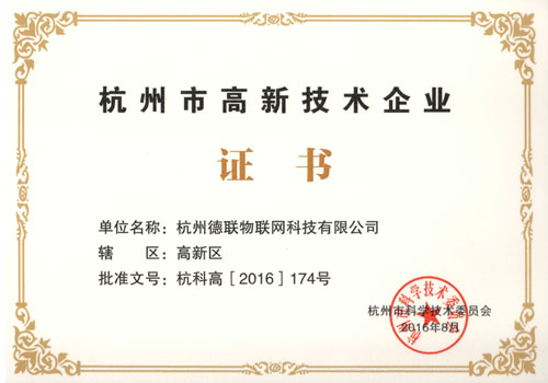 喜訊:2016 年8 月2 日,2016年杭州市第一批市級高新技術(shù)企業(yè)認(rèn)定公示,我公司旗下子公司杭州德聯(lián)物聯(lián)網(wǎng)科技有限公司被認(rèn)定為杭州市高新技術(shù)企業(yè)。 同時(shí),于2016年8月10日,順利通過雛鷹企業(yè)績效考核。